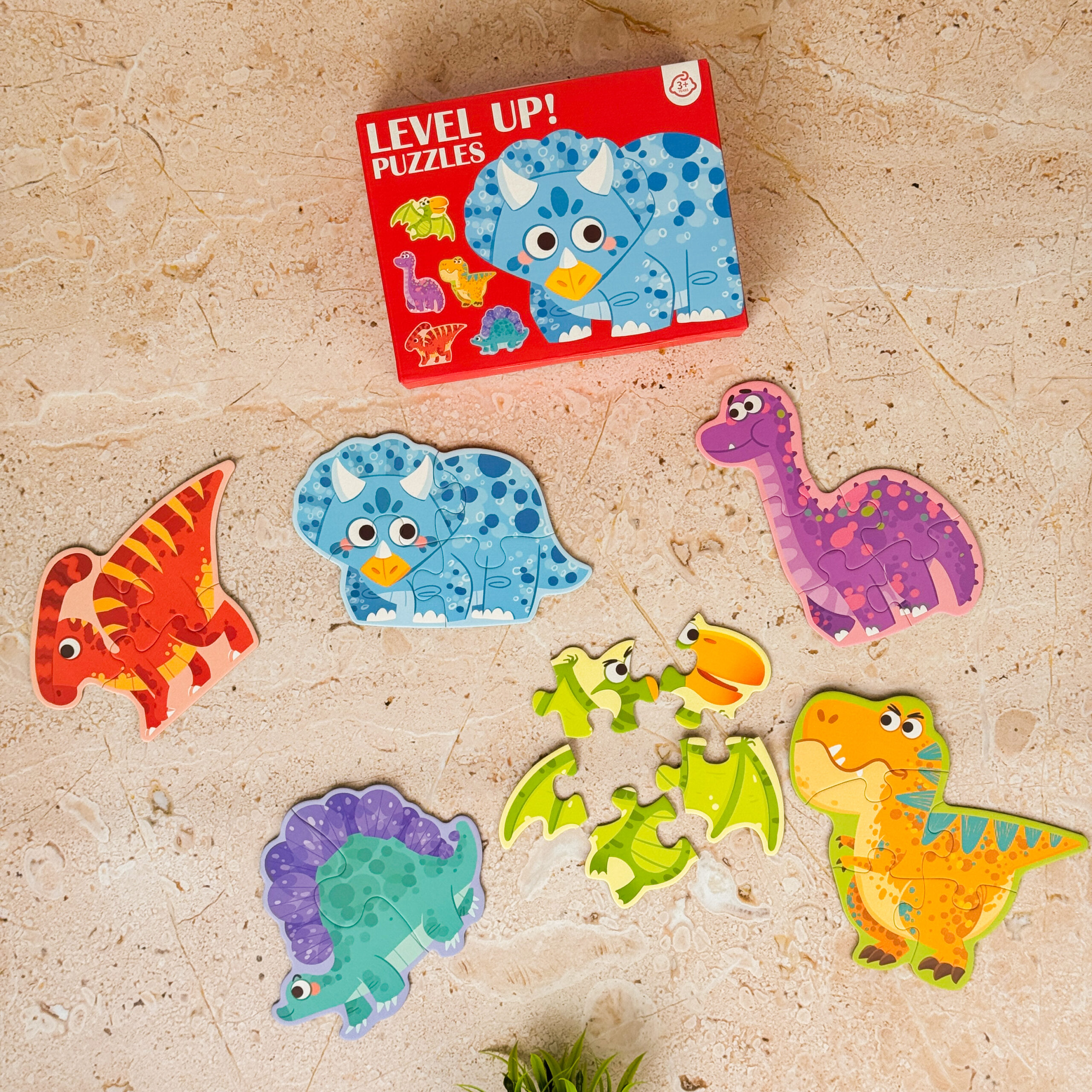 Ці яскраві набори створені спеціально для малюків від 3 років і пропонують гру з поступовим ускладненням. Спершу дитина збирає пазлики з 2-х елементів, далі — з 3-х, 4-х і аж до 6-ти. Такий підхід допомагає плавно розвивати логіку, моторику, координацію рухів та впевненість у власних силах. У кожному наборі — веселі тваринки або транспорт, зручна коробочка з ручкою та море радості від гри!
