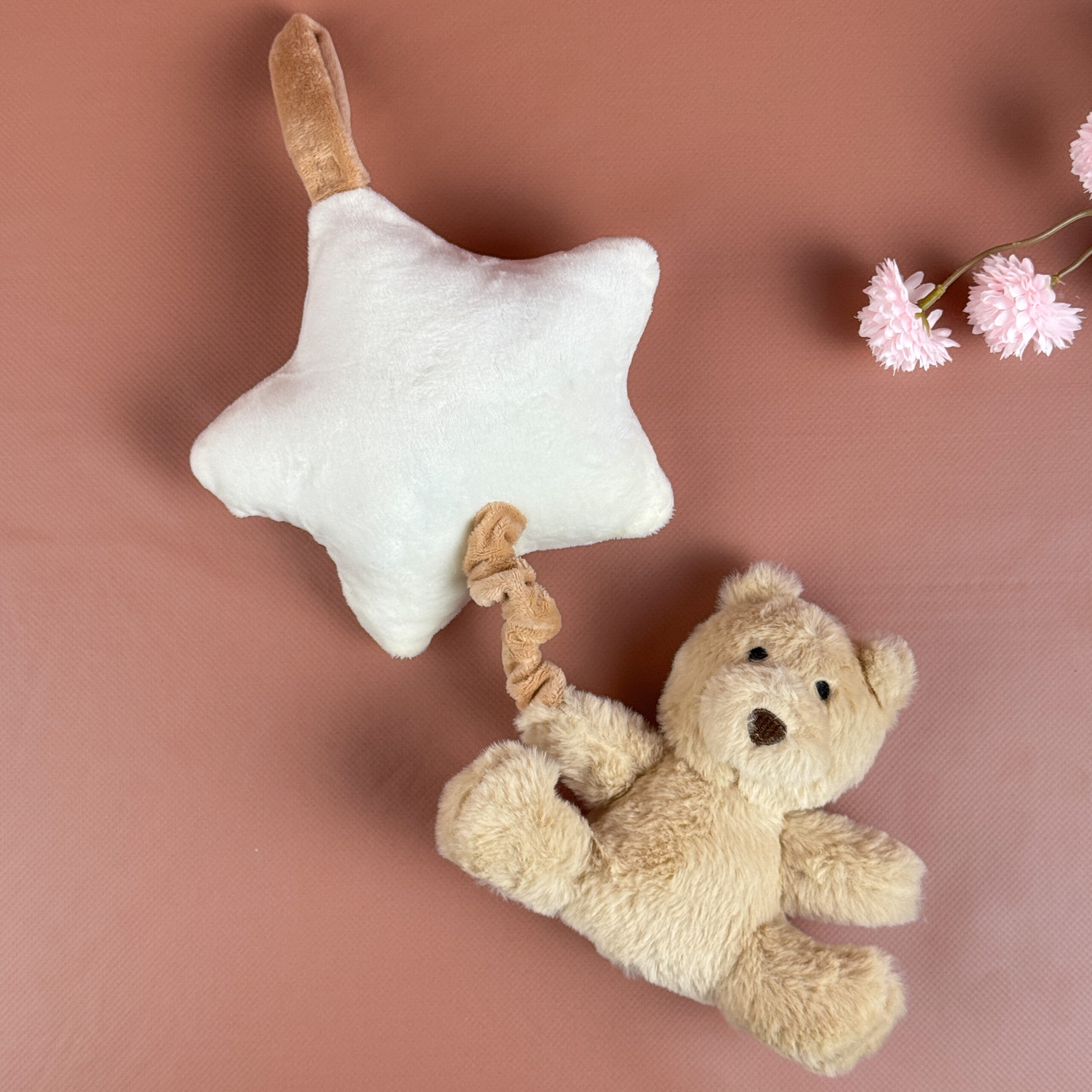 М’яка іграшка підвіска на коляску або ліжко “Ведмедик із зірочкою”