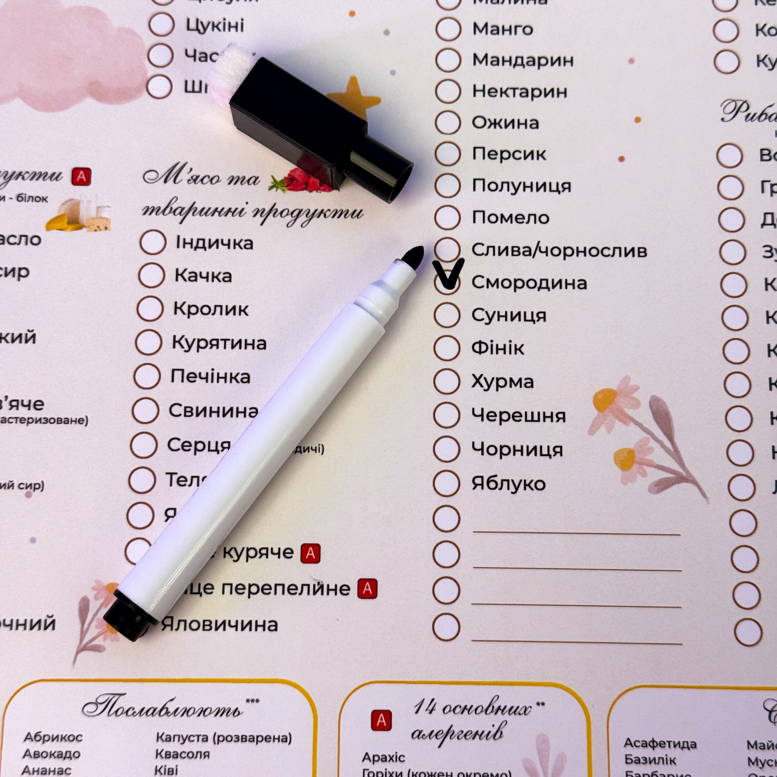 Планер першого прикорму — незамінний інструмент для батьків, які дбають про здорове харчування малюка з перших днів! Ідеально підходить для організації меню, фіксації нових продуктів, реакцій дитини та режиму годувань.