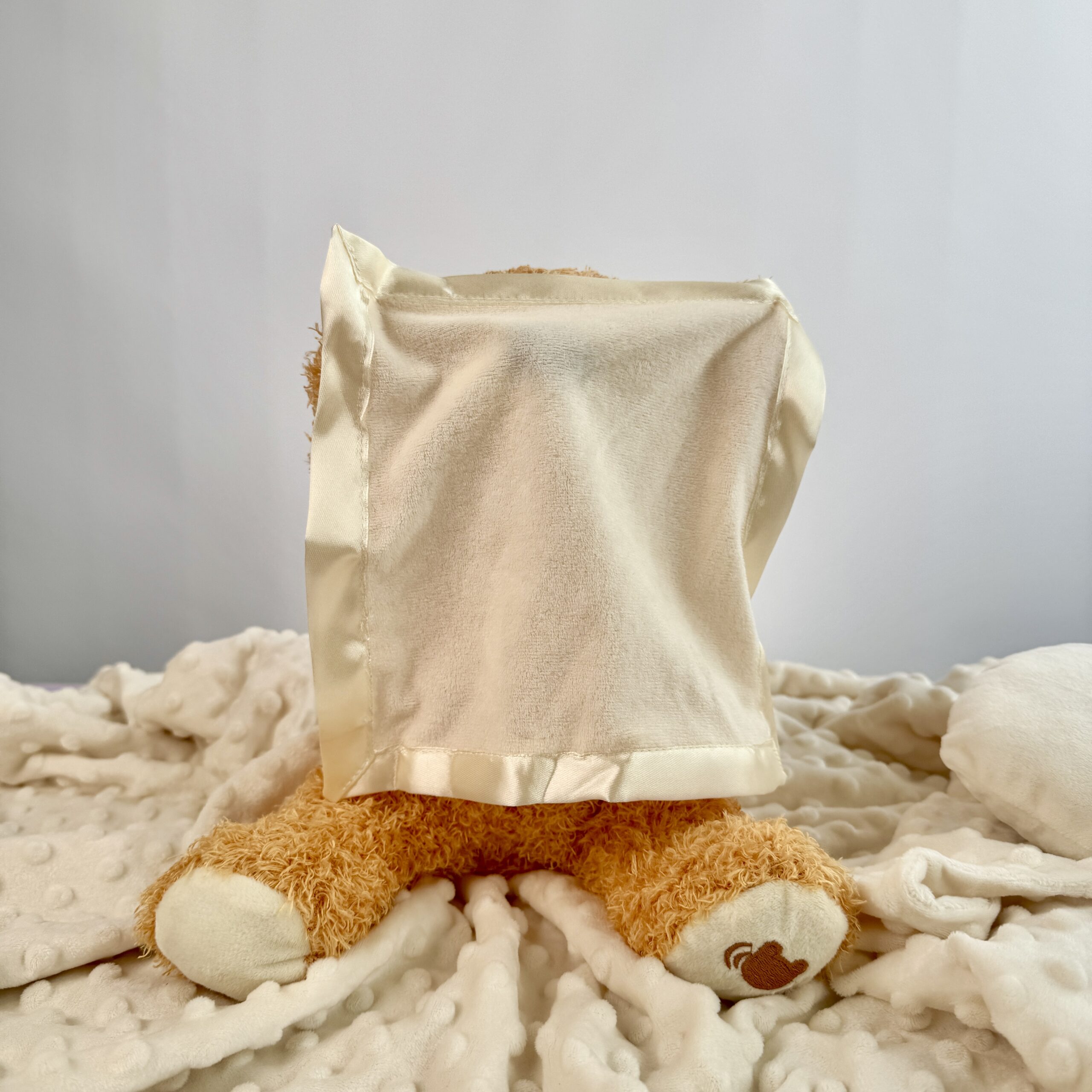 Цей чарівний ведмедик створений зі зносостійкого штучного хутра та приємного на дотик текстилю. Наповнений м’яким матеріалом, він абсолютно безпечний навіть для найменших діток. Натиснувши на лапку, малюк активує захопливу гру “Пікабу” – ведмедик весело ховається за хусточкою та розмовляє англійською мовою, що робить гру не лише веселою, а й навчальною.