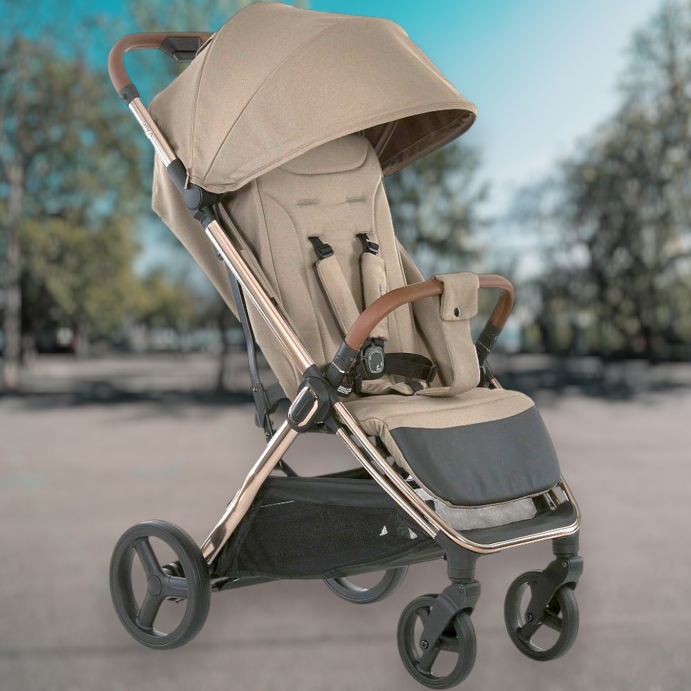 El Camino Axis бежевого кольору — це інноваційна прогулянкова коляска, яка вдало поєднує комфорт дитини, зручність для батьків і витриманий сучасний дизайн. Ідеальний вибір для щоденних прогулянок у місті чи на природі.
