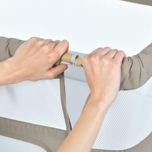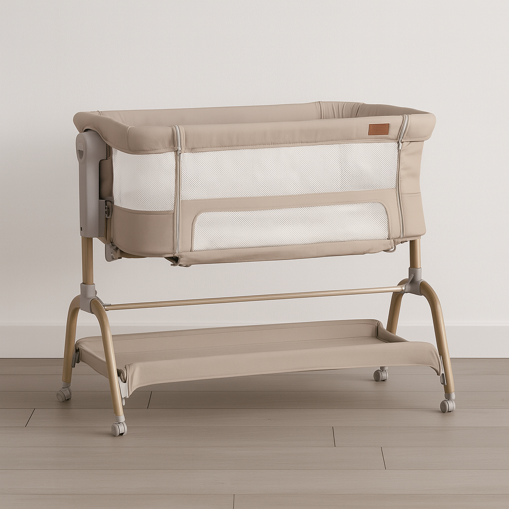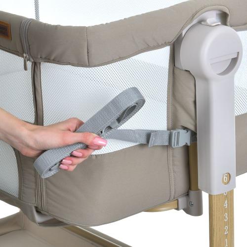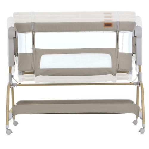Механічна функція гойдання допомагає заспокоїти дитину, а сітчаста вставка забезпечує чудову вентиляцію. Для зберігання підручних речей передбачено кошик із жорстким дном, а коліщатка зі стопорами полегшують переміщення по кімнаті. Знімна люлька, матрац зі знімним текстилем і обивка, що переться, роблять догляд за ліжечком простим і зручним.