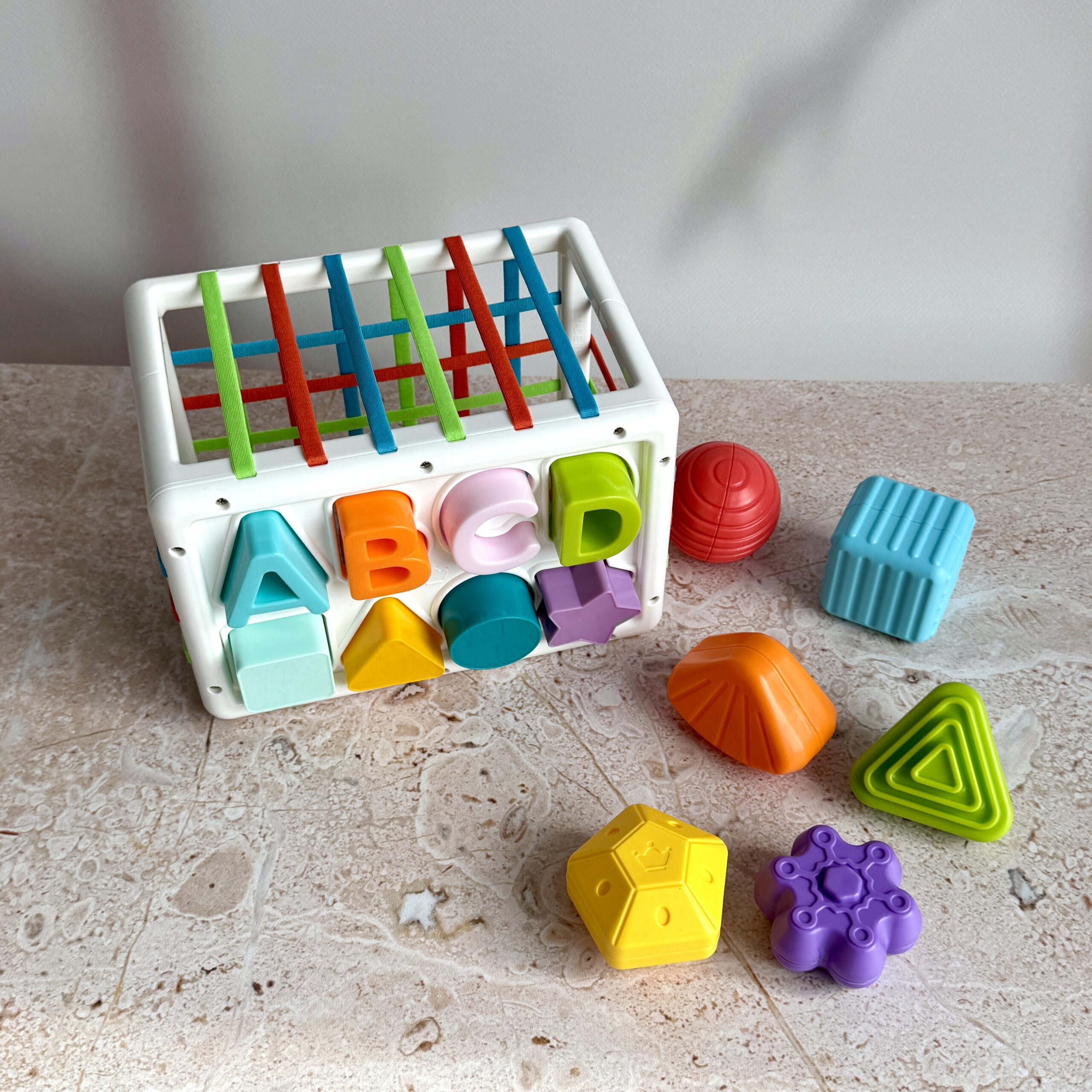 Ігри, які поєднують користь та радість, займають особливе місце у світі дитячих забав. Сортер HE 0209 – це унікальна розвивальна іграшка, що допомагає дитині пізнавати світ через гру. Каркас куба обтягнутий міцними різнокольоровими шнурками, між якими необхідно закинути 14 барвистих сенсорних елементів із різними фактурами.