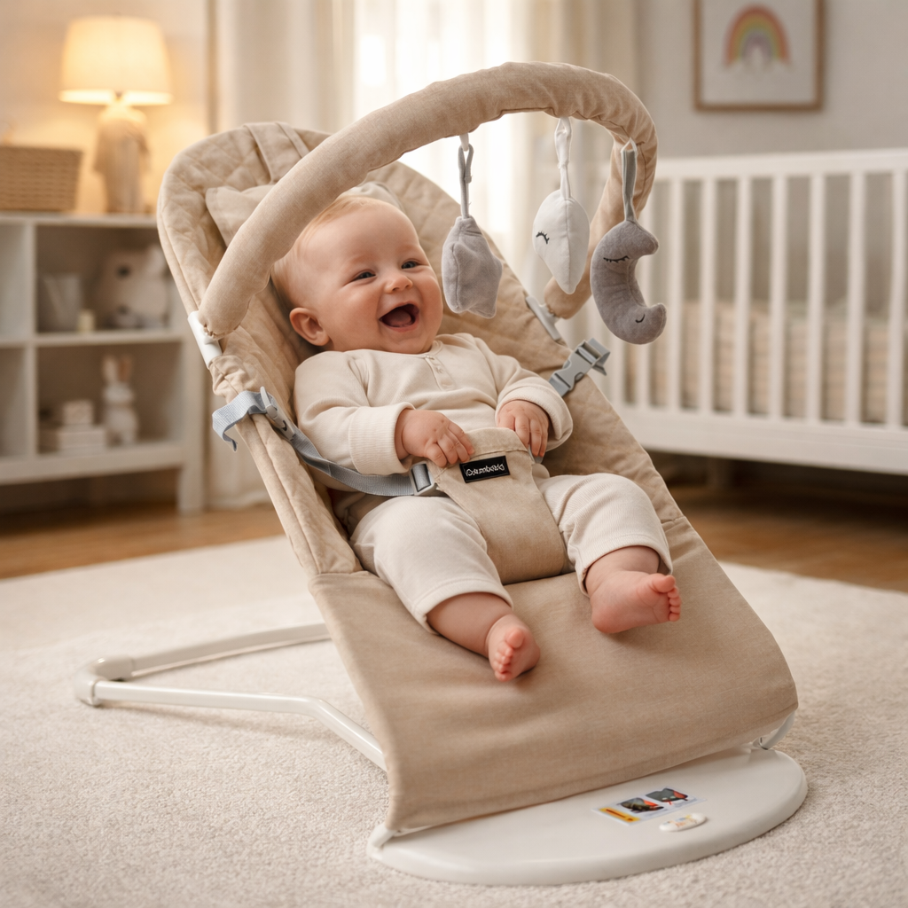 – Природне погойдування: Шезлонг гойдається від рухів малюка, що не тільки приносить радість, а й сприяє розвитку моторики та рівноваги. Легке погойдування заспокоює дитину.