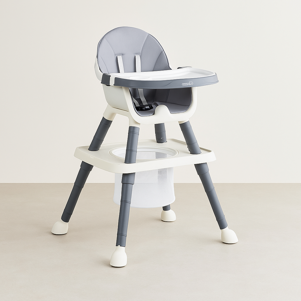 Завдяки розумній трансформаційній системі стільчик легко перетворюється на низький стілець із невеликим столиком — ідеальне місце для ігор, малювання чи перекусів. При цьому ніжки знімати не потрібно — усе змінюється за кілька секунд простими рухами.