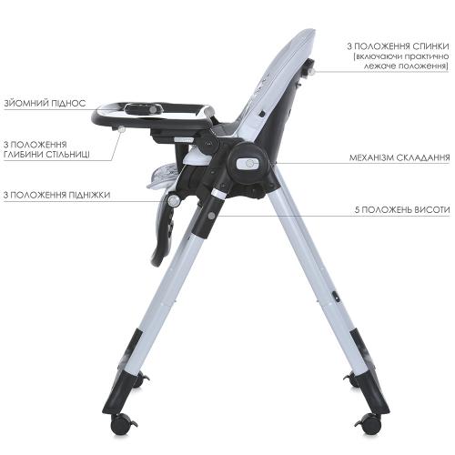 Стільчик має регулювання спинки, підніжки та висоти сидіння — усе для максимальної зручності як малюка, так і батьків. Просторе сидіння дозволяє дитині вільно рухатися та комфортно почуватися.