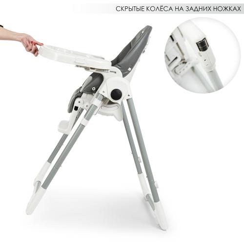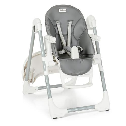 Стільчик для годування El Camino Prime ME 1038 Gray — регулювання спинки, висоти та підніжки, оббивка з екошкіри, знімний столик, складання, колеса (сірий)