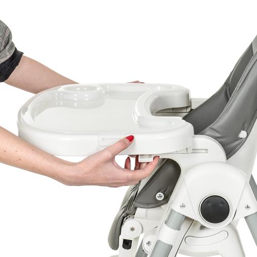 Знімний столик можна регулювати в трьох положеннях по глибині, а знімний піднос спрощує догляд. При потребі столик можна зняти повністю, щоб використовувати стільчик біля загального столу.