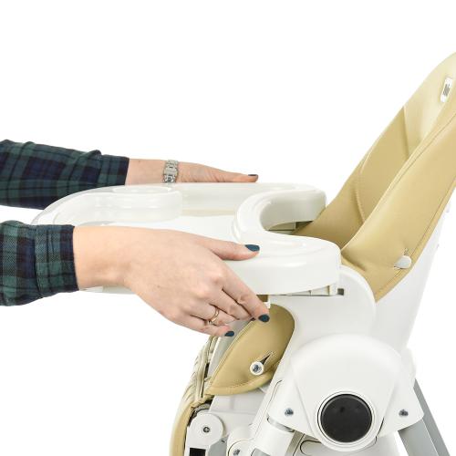 Знімний столик можна регулювати в трьох положеннях по глибині, а знімний піднос спрощує догляд. При потребі столик можна зняти повністю, щоб використовувати стільчик біля загального столу.