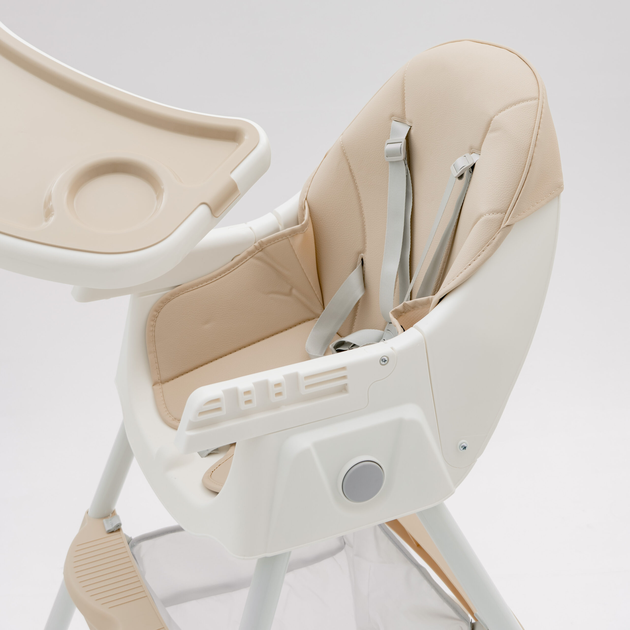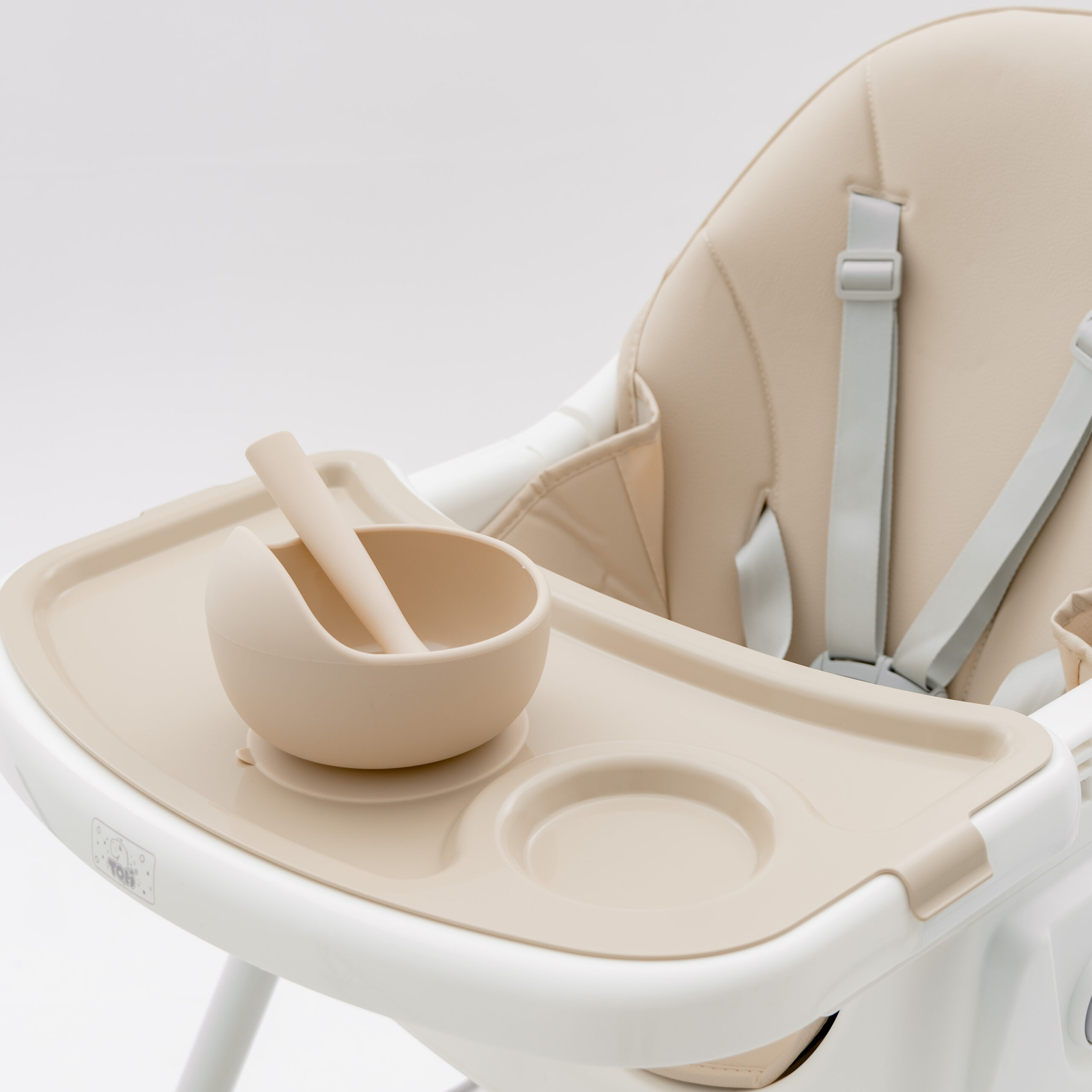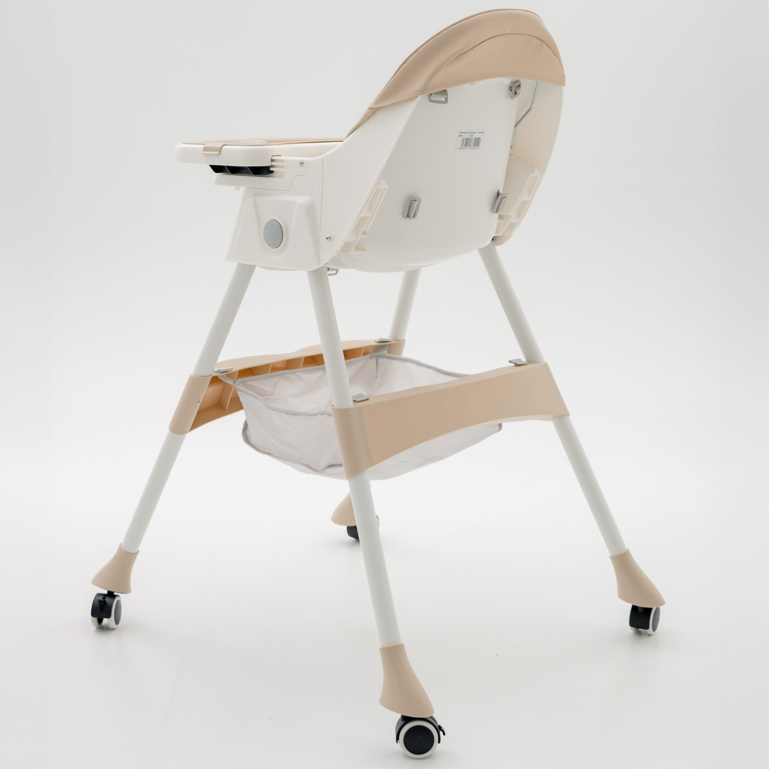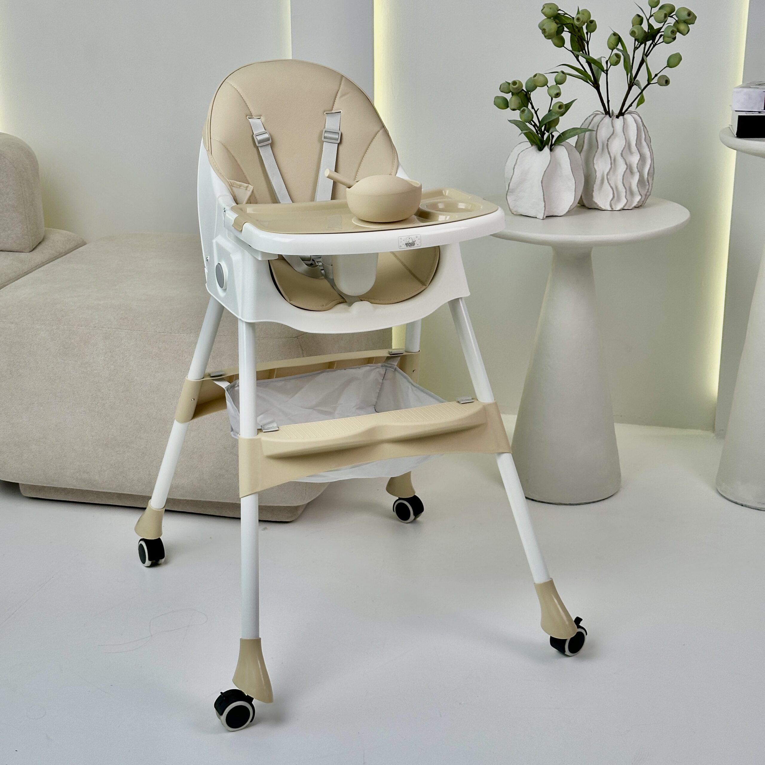 Стілець для годування Totti з регульованою спинкою на колесах, знімним столиком і кошиком для іграшок (бежевий)
