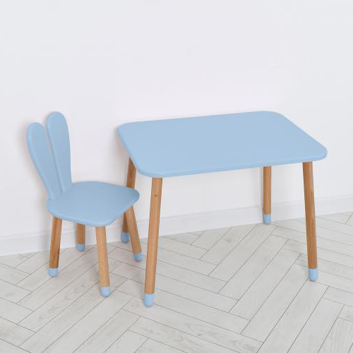 Дитячий стіл зі стільцем Bambi 04-027 Зайчик: з шухлядою, МДФ і дерево, компактний розмір (Синій)