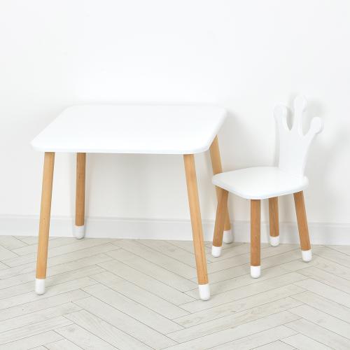 Дитячий столик зі стільчиком Bambi 06-025W-SQUARE – з дерева, МДФ та силіконовими накладками (Білий)