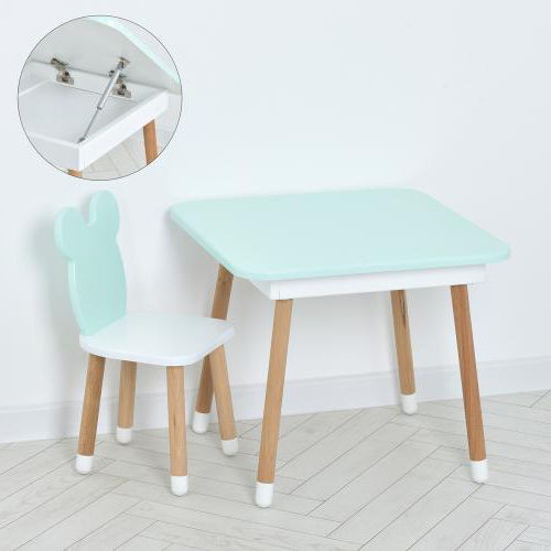 Дитячий стіл Bambi 07-025B-BOX Ведмедик – зі стільчиком та шухлядою, міцна основа та яскравий дизайн (Бірюзовий)