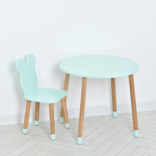 До столу входить зручний стільчик зі спинкою, що забезпечує комфортне сидіння. Ніжки столу та стільця оснащені силіконовими накладками, які запобігають ковзанню та захищають підлогу від подряпин. Виготовлений з натуральних і міцних матеріалів, комплект служитиме довго, не втрачаючи своїх властивостей.