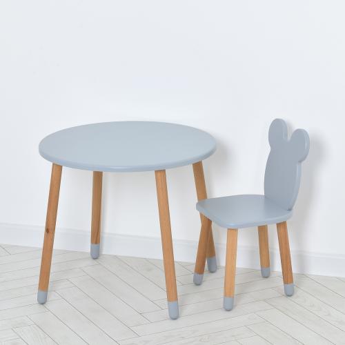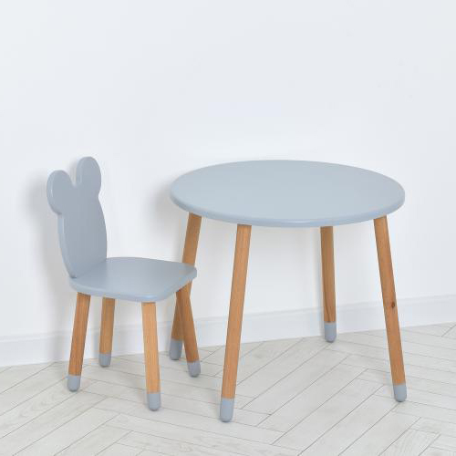 Дитячий столик Bambi 07-025G-ROUND Ведмедик – зі стільчиком: кругла стільниця, силіконові ніжки, зручна спинка та якісні матеріали (Сірий)