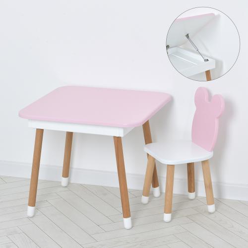 Дитячий стіл Bambi 07-025R-BOX Ведмедик – зі стільчиком та шухлядою, міцна основа та яскравий дизайн (Рожевий)