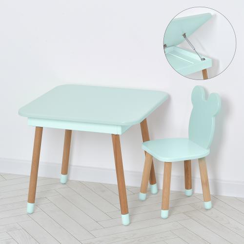 Цей комплект стане улюбленим місцем для занять, малювання чи ігор. Завдяки підйомній стільниці, всередині передбачене просторе сховище для зберігання іграшок, зошитів або канцелярії — усе необхідне завжди буде під рукою.
