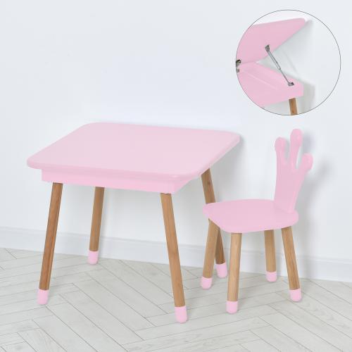 Столик зі стільцем Bambi 09-025R-BOX Корона – з підйомною стільницею, ящиком для зберігання та захистом підлоги (Рожевий)