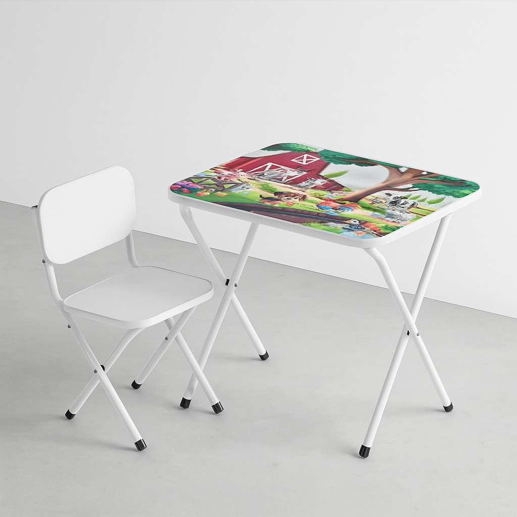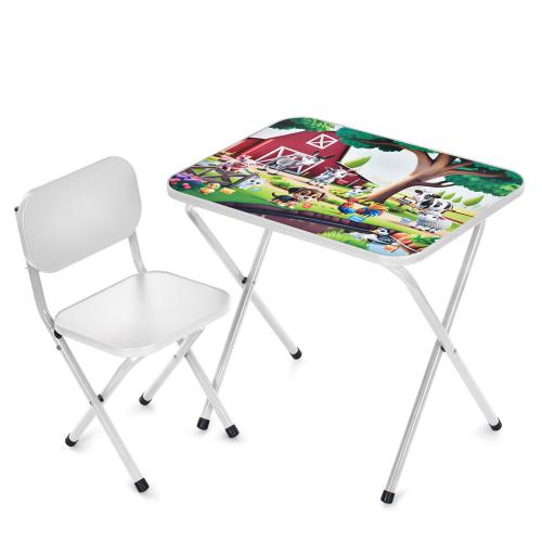 Дитячий столик складаний зі стільчиком Bambi M 5966-1 Домашні тварини – з малюнком, легко складається, зручний для ігор та занять (Білий)