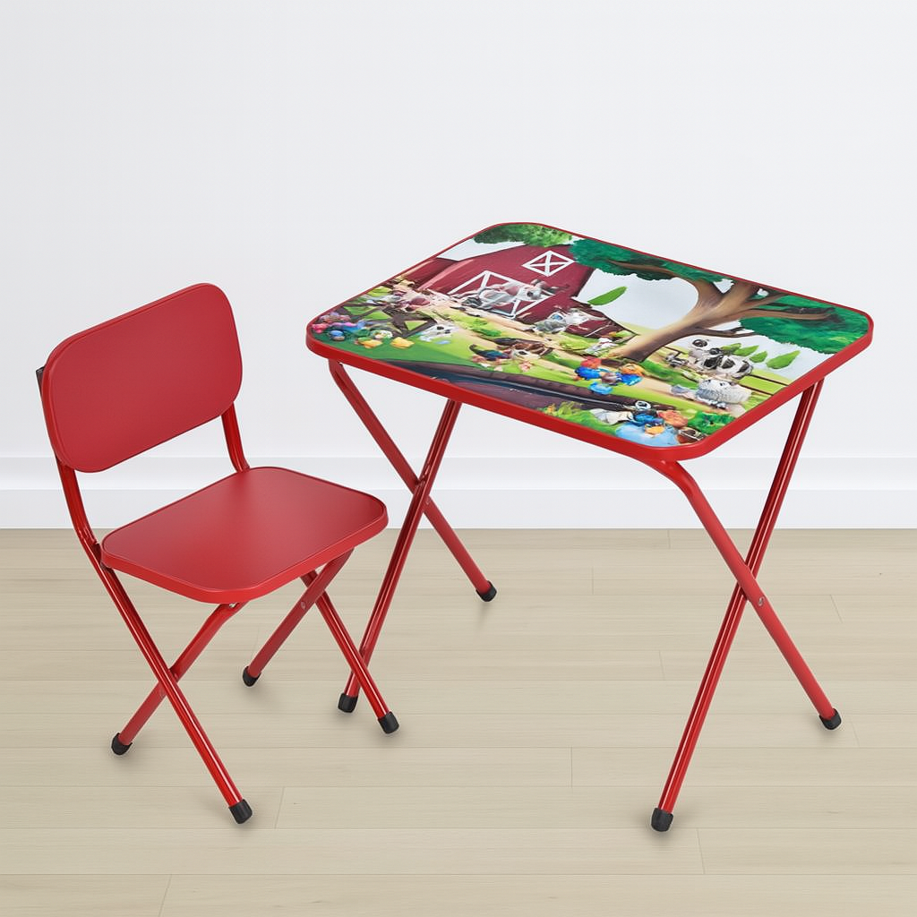 Цей комплект стане чудовим рішенням для організації місця для малювання, письма чи творчості. Столик і стілець легко складаються, займають мінімум місця при зберіганні та ідеально підходять навіть для невеликих кімнат. Яскраве оформлення стільниці неодмінно сподобається дитині, а гладку поверхню легко очищати від забруднень.