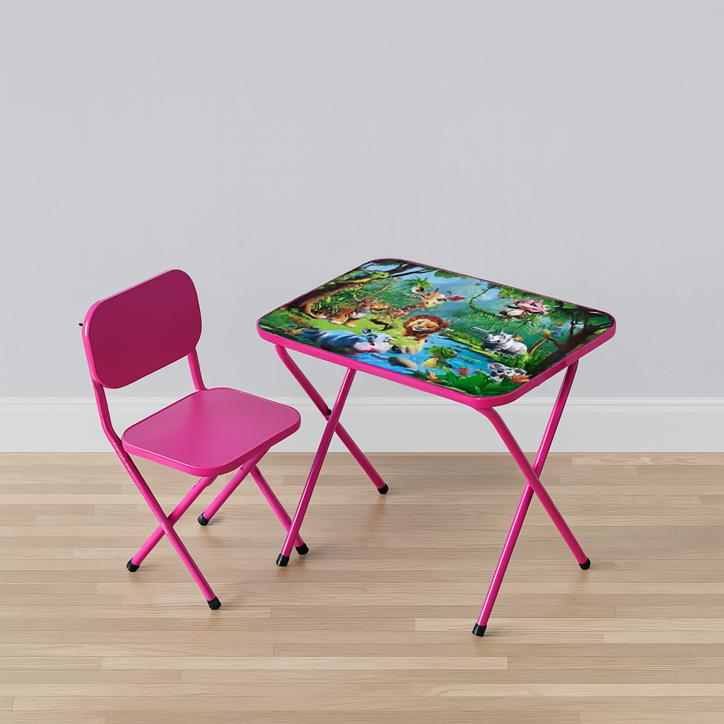 - Набір дитячих меблів складається зі столу та стільчика, які ідеально підходять для організації дитячих занять та ігор.