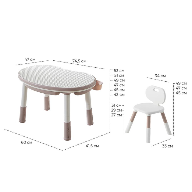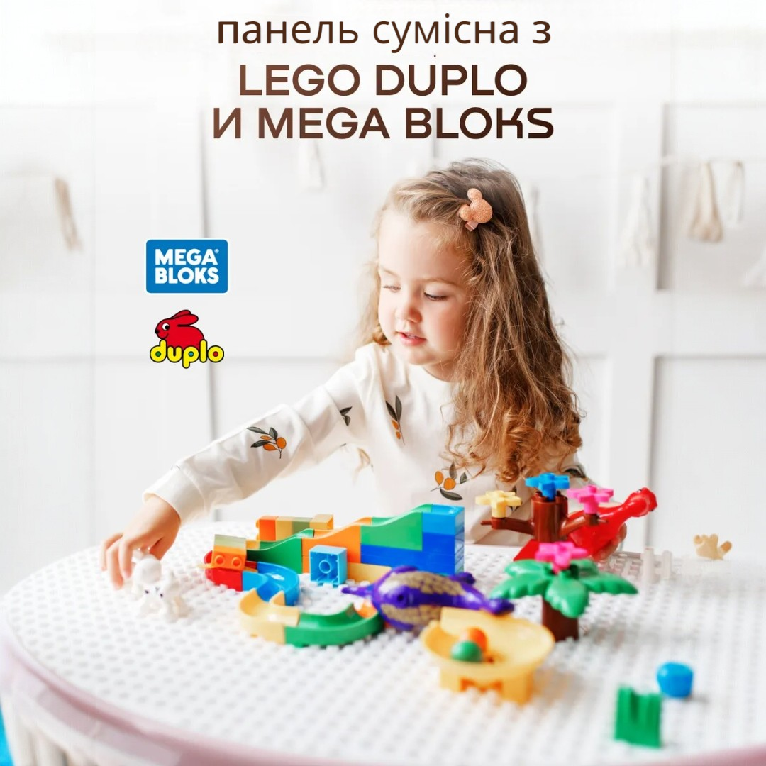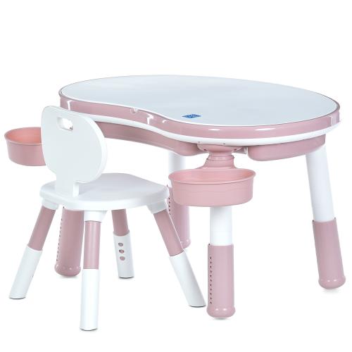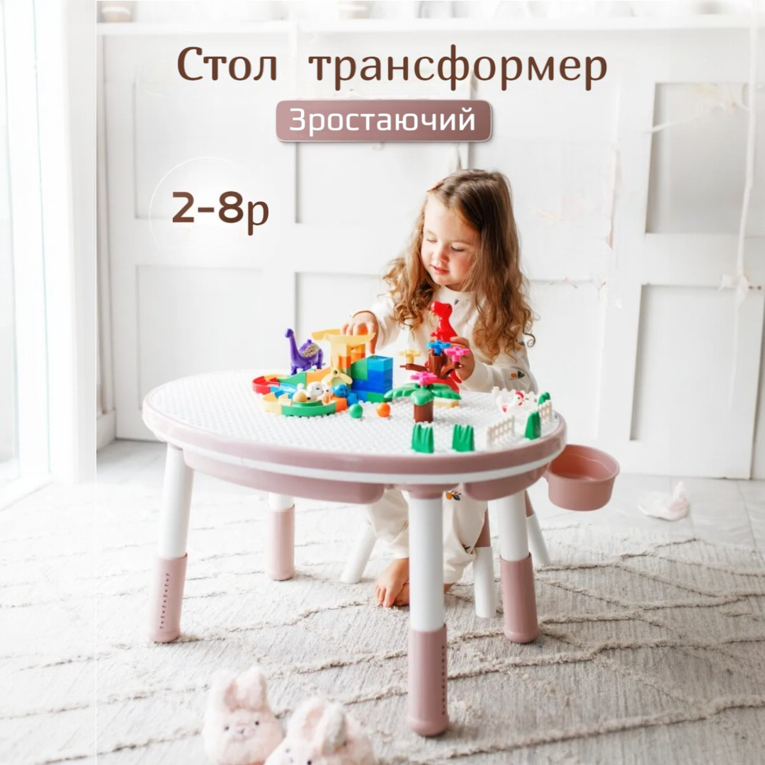Столик та стілець дитячий зростаючий з лего поверхнею багатофункціональний для дітей від 2 до 8 років ( рожевий CK)
