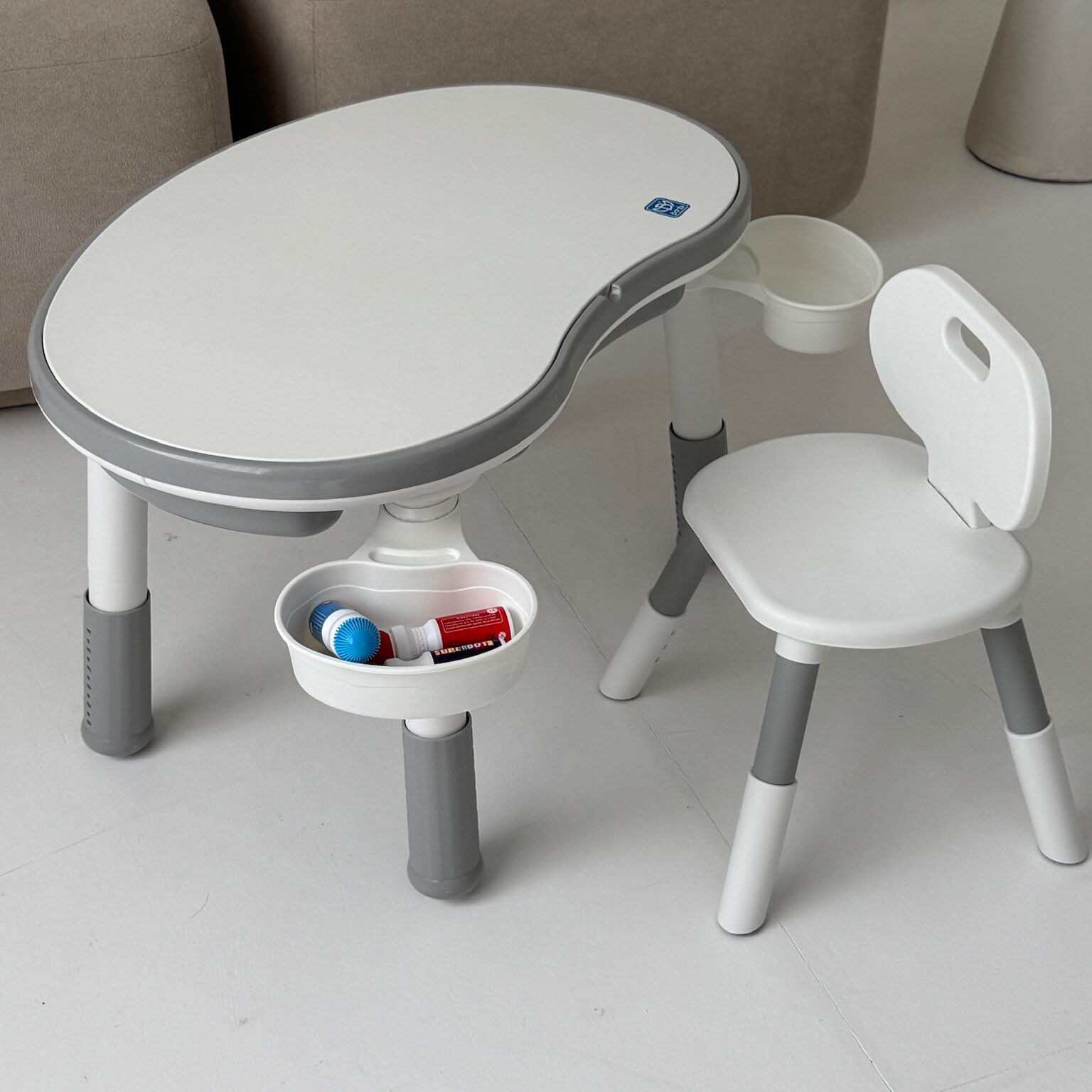 Столик та стілець зростаючий з регулюванням висоти, з легою поверхнею , багатофункціональний ( сірий CK)