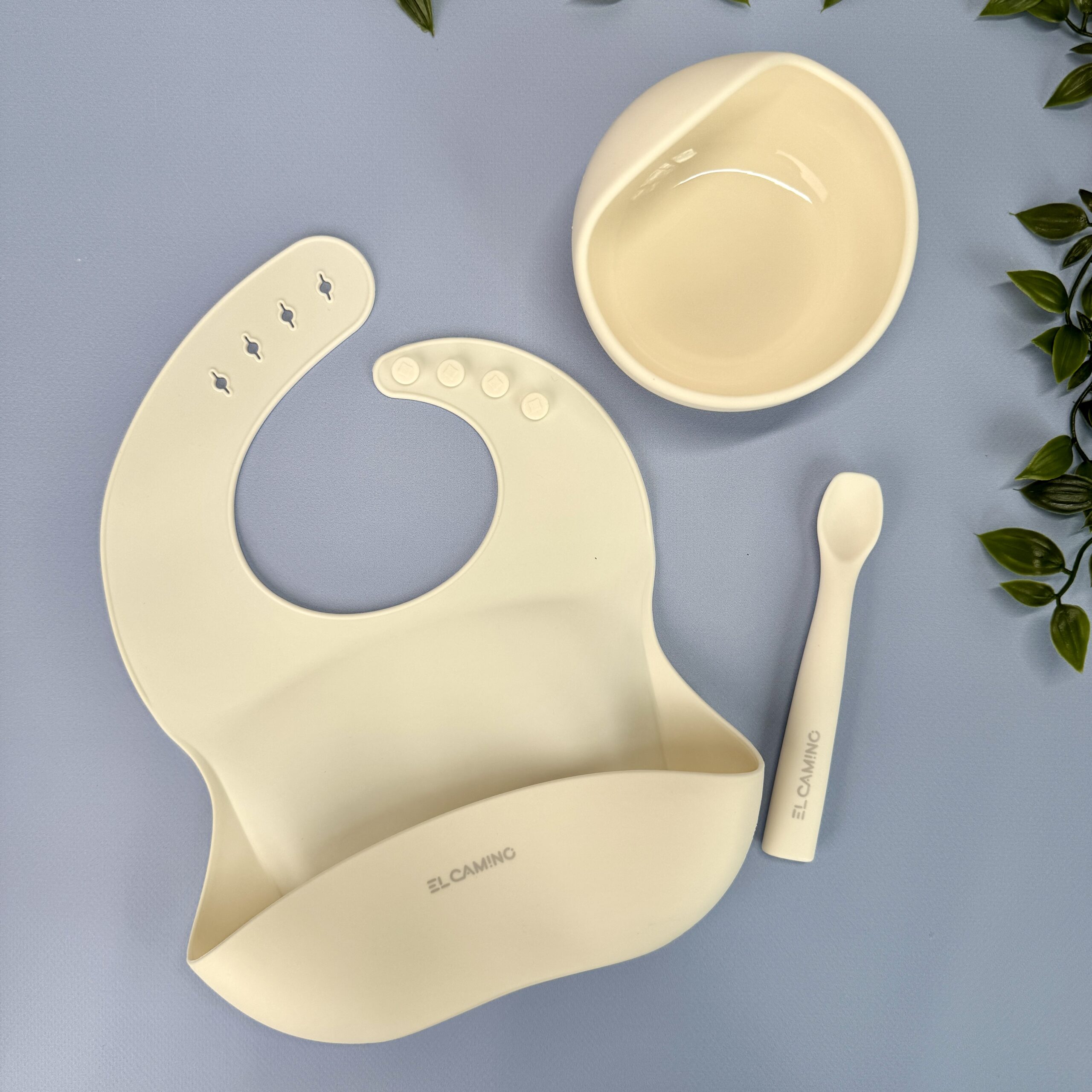 Силіконовий набір посуду для немовлят – Пудровий колір