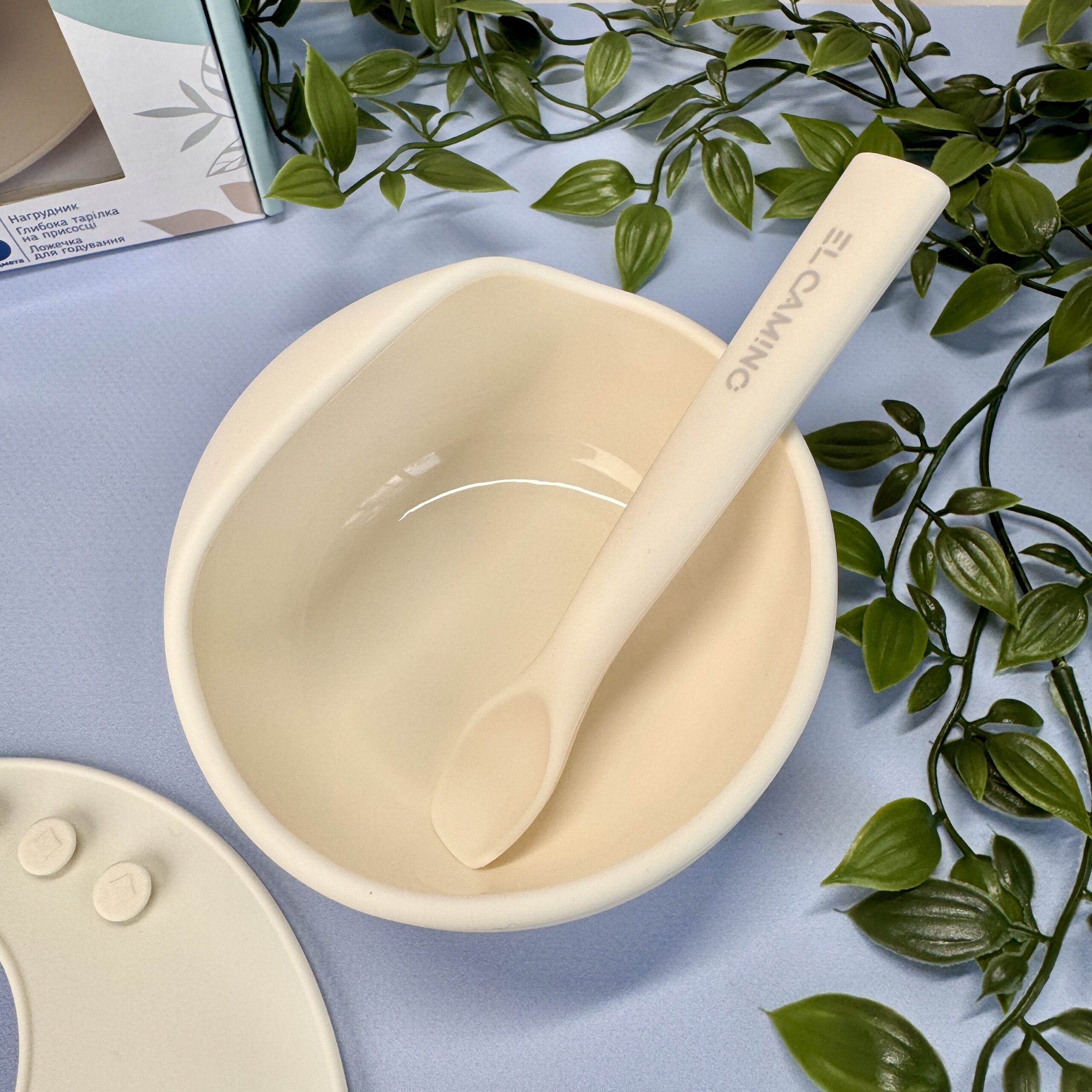 Силіконовий набір посуду для немовлят - Молочний колір Оригінальна ціна: 569 ₴.Поточна ціна: 399 ₴.