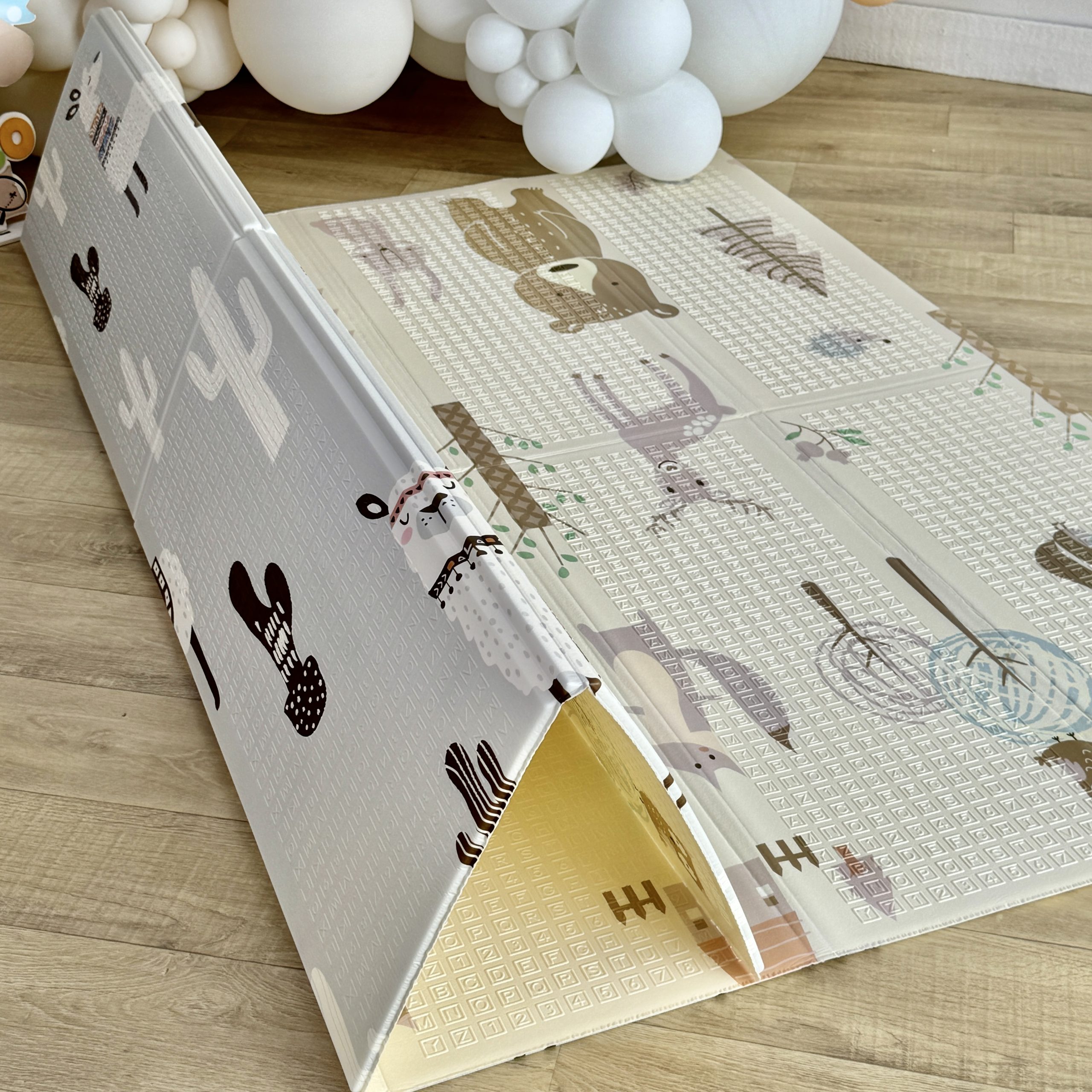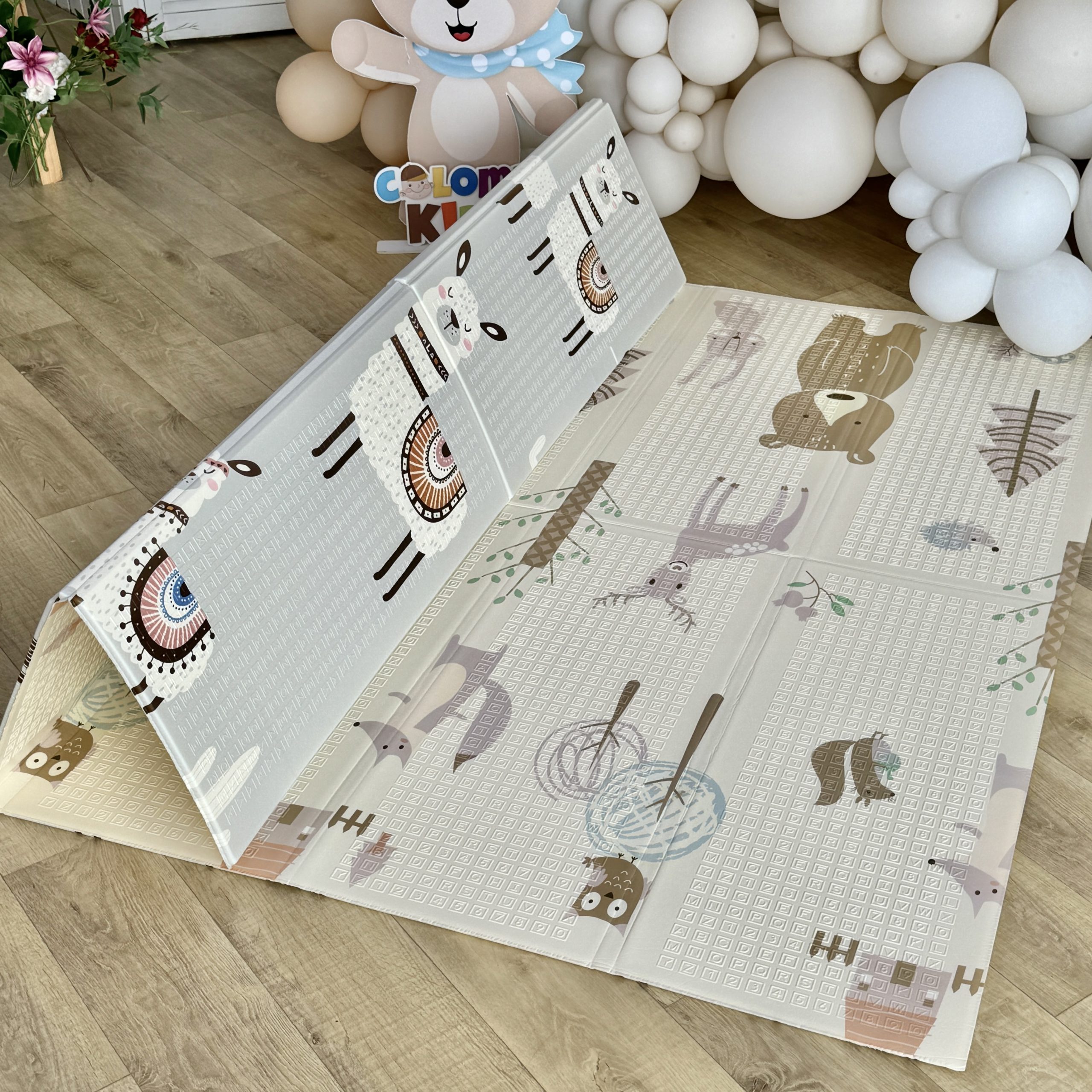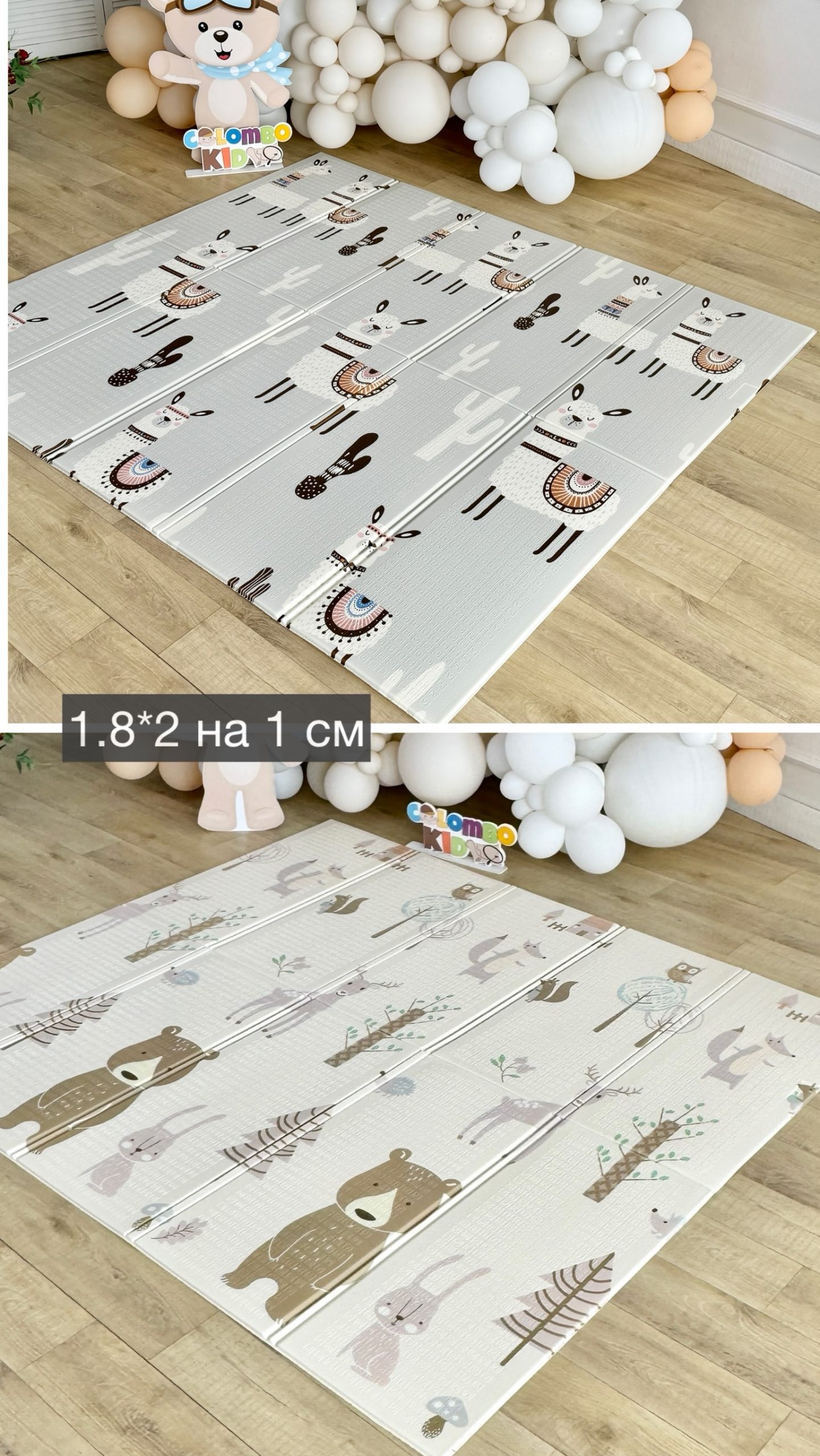 Портативний складний термо килимок “Лами-Ведмедики” — це безпечна, комфортна, стильна зона для ігор і розвитку розміром 200х180×1 см. На кожному боці килимка зображеня тварин та життєрадісні тематичні малюнки: з тваринами, які допоможуть у навчанні, пізнанні світу та розвитку, орієнтації в просторі й розвитку уяви. Килимок преміум класу з високоякісним принтом, легко складається в сумку. Гарантуємо , ваша дитина буде в захваті від такого термокилимка. Пастельні тона підійдуть до будь-якого інтер’єру . Термоковрик дуже добре амортизує при падінні та не пропускає холод, адже матеріал спресований в 10 разів.
