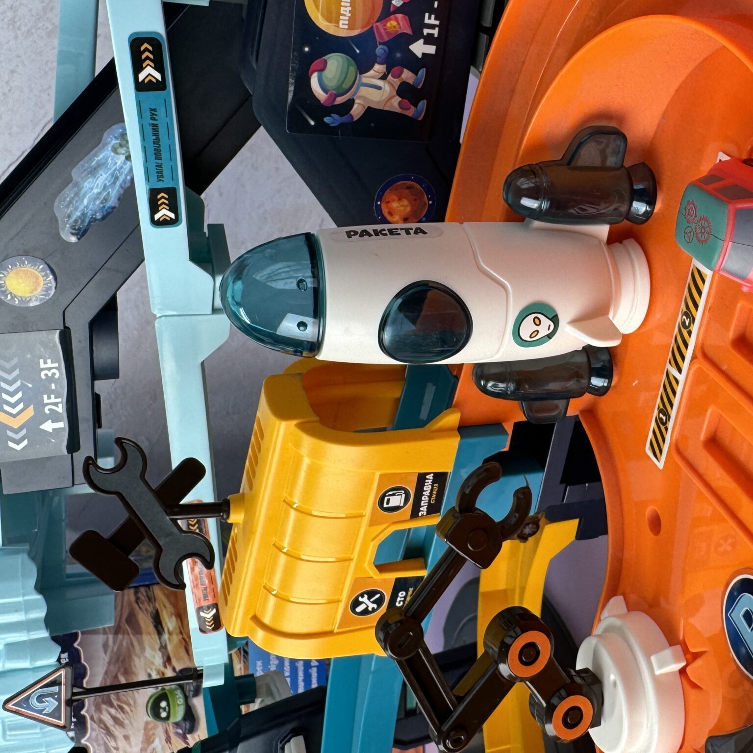 Автоматичний підіймач забезпечує безперервний рух транспорту і активує кнопки для запуску мелодії — звучить дитяча пісенька про космос та коротенька казка, яка додає гри особливої магії.