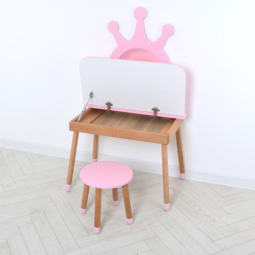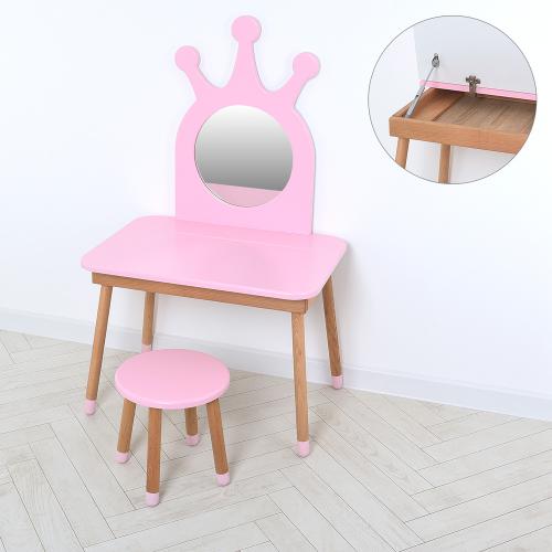 Дитячий туалетний столик Bambi 03-01-BOX Корона: з стільчиком, ящиком і зеркалом (Рожевий)