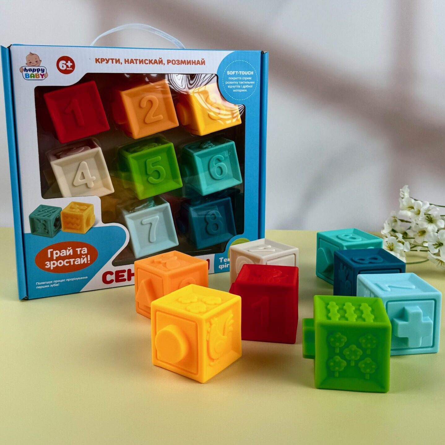 Розвивальний набір сенсорики силіконові кубики 8 шт в упаковці