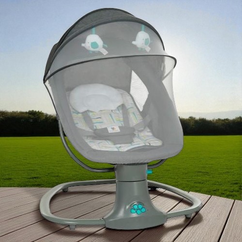 5 швидкостей гойдання, заспокійливі мелодії, таймер, знімна дуга з іграшками, ремені безпеки та пульт керування — усе для зручності дитини й батьків. Підходить з народження до 9 кг